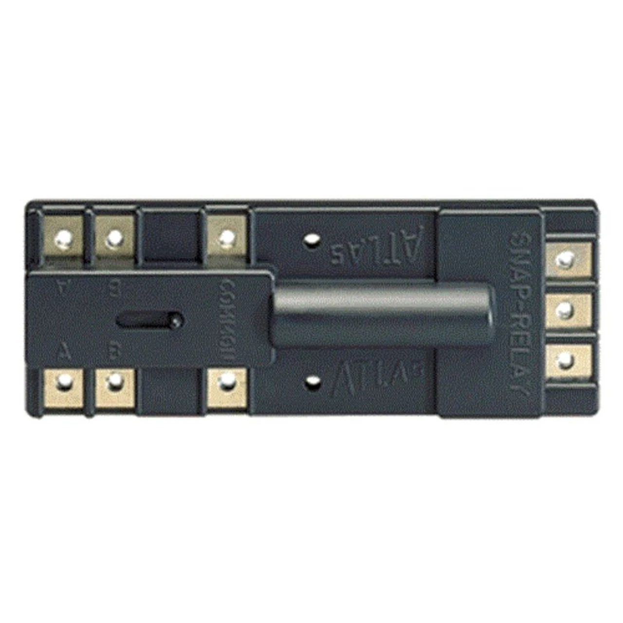 A double-pole, double-throw relay with actuating mechanism driven by a momentary-power, twin coil solenoid. (A solenoid is a cylindrical coil of insulated wire in which an iron core is made to move back and forth by a flow of electric current.) With just a few simple connections, this small device, which may be mounted anywhere, can: Power the frogs on Atlas’ Mark 3 & Code 83 #6 turnouts Control trackside signal lamps to show turnout point positions Operate control panel lamps to show settings of remotely located turnouts (switches) Provide selective track siding control. Sidings are powered only when points are aligned for siding. Siding remains dead when points are set for the mainline. Control X-sections automatically. This very useful track arrangement is thoroughly discussed in Atlas’ Complete Wiring Book. 14Â – 16 volts Atlas Snap-Relay