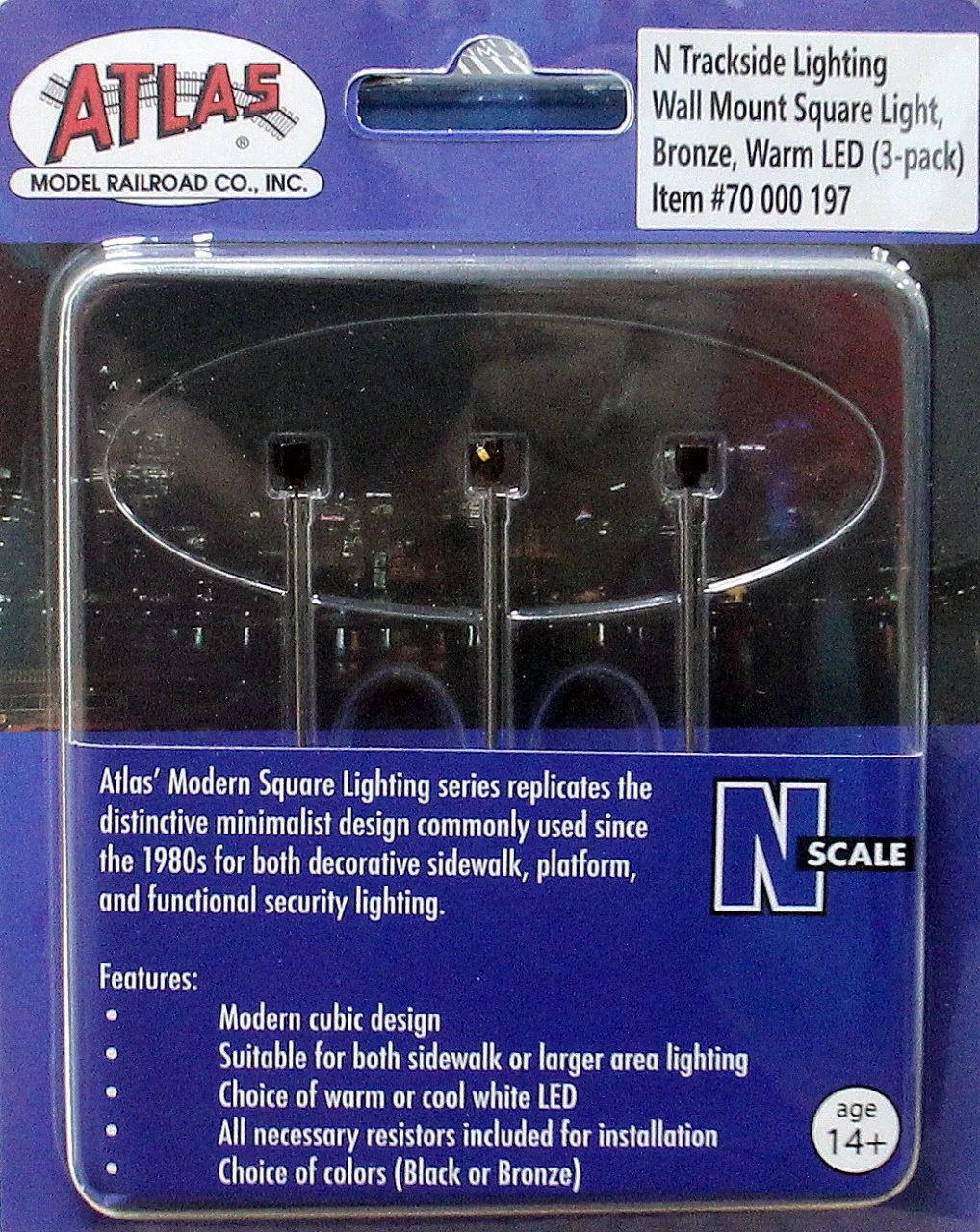 Atlas 70000197 – WALL MOUNT SQUARE LIGHT, BRONZE, WARM LED [3-PACK] – N Scale