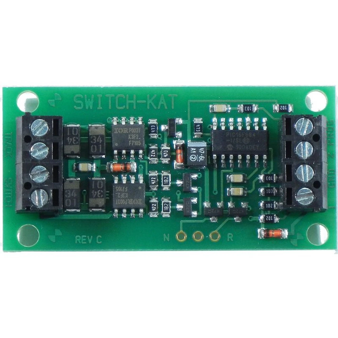 Your Kato Unitrack and LGB remote control turnouts can now be DCC controlled. The Switch-Kat provides connections for optional switch position indicator lights and “local control” pushbuttons. Simple installation, two wires to the track, two wires to the switch. Controls 1 switch. NCE Switch-Kat Accessory Road Name: Road Number: Photo may not show actual road number . Please see description for actual road number