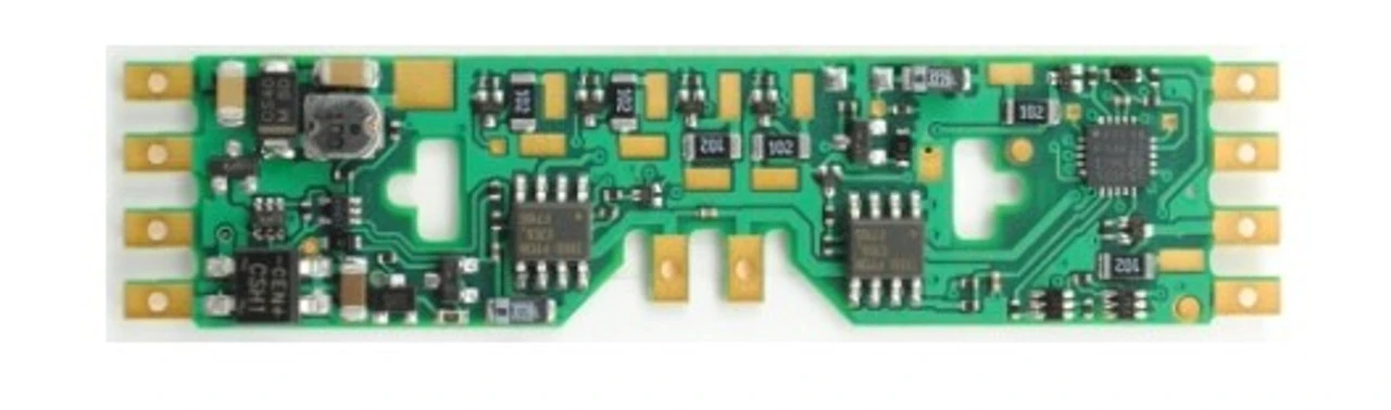 The A6X is six function HO-scale “drop-in” style mobile decoder with integrated 1.5V power supply for Atlas, Athearn, Kato, etc. locomotives. Examples include the following: