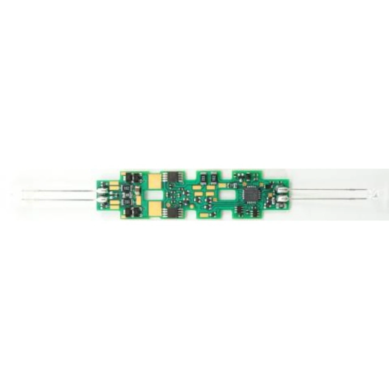 The K0D8 is a N-scale drop-in decoder for Kato locomotives. Examples include the following: Kato: PA1 E8A/E9A P42 Genesis See the installation pages for a full list of compatible engines! Note: The K0D8 line of decoders are available with different lighting configurations. Pay special attention to the compatibility. The K0D8-A features 2 onboard super-bright, “Sunny White” LED’s with long leads. Back EMF Load Compensation: Provides superior slow speed control and high performance under load. Quiet Drive: Super-quiet motor control for “buzz” free motor performance. DC Mode: Decoder will automatically detect DC power. You can also configure how your lighting effects function on DC. RailCom®: This feature allows the decoder to talk to the command station. RailCom supports expansion for new features. Variable Momentum: Allows you to make custom acceleration and deceleration curves. LED Support: This product does not require external resistors when connecting LED’s. Incandescent Bulb Support: This decoder can be used with 12 Volt bulbs. Function Remapping: Buttons 0 through 12 may be used to control the lighting functions of this decoder. Programmable Lighting Effects: Choose from 20 separate user-programmable lighting effects! Dimmable Brightness: Configure multiple different brightness levels for your LED’s or incandescent bulbs. Decoder Lock: Feature which prevents accidental/unwanted programming while activated. Airwire™ Compatible: Fully compatible with Airwire™ operation. User-Loadable Speed Tables: Configure custom speed curves and set speed limits. Specs Interface Type Drop-In Dimensions (L x W x H): 2.139″ x 0.538″ x 0.068″ or 54.32mm x 13.67mm x 1.73mm Scale: N Scale Continuous/Peak: 1.0/2.0 Amp Total Functions: 8 Function Rating: 80 mA 12V Outputs 6 LED Outputs 6 Onboard LEDs 2