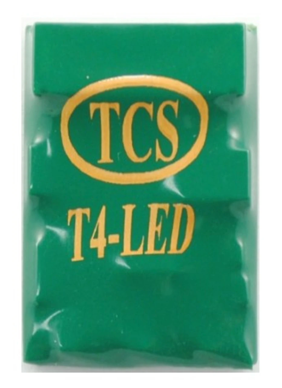 The T4 is a multi-purpose HO-scale decoder. This decoder may be hard-wired or plugged directly into any locomotive with a 9-pin JST plug. The on-board resistors on this decoder allow for LED installations without the need for external resistors for F0F, F0R, F1, or F2. Use the standard T4 decoder if your locomotive uses incandescent bulbs.